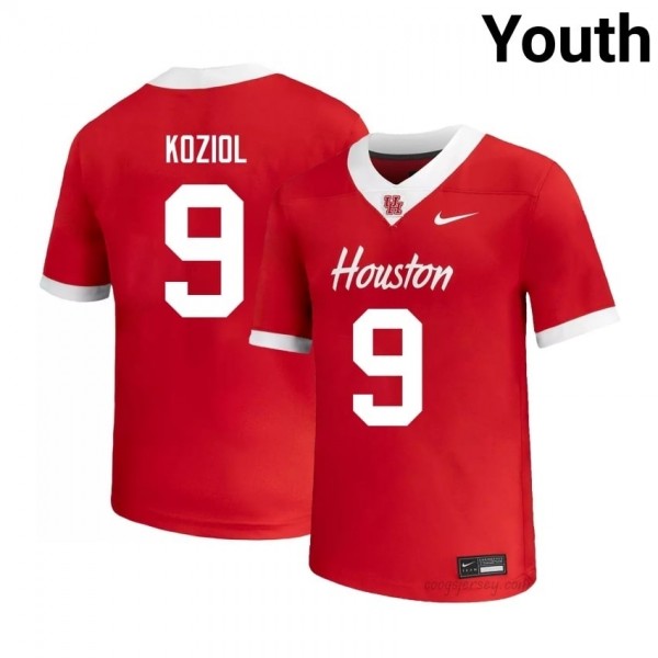 Cougars Tanner Koziol #9 Red Youth NCAA Football Jersey | Premium Stitched Edition 94870619