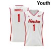 Isiah Harwell #1 UH Cougars White Youth Basketball Jersey | NCAA Licensed Official Wear 41551328