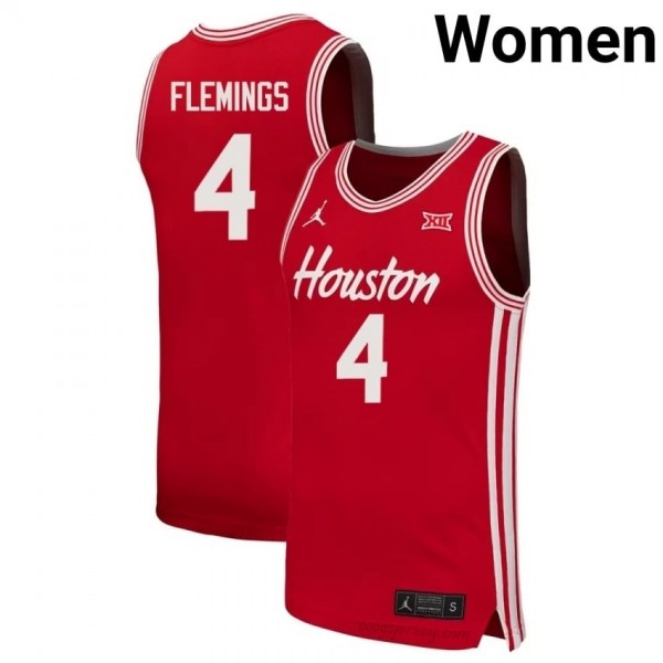 Kingston Flemings HOU Cougars #4 Red Women's Basketball Jersey | NCAA Fan Game Gear 51509936